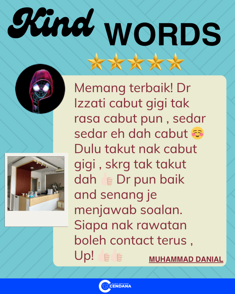 ✅ Tempah slot bersama Klinik Pergigian Cendana sekarang untuk kelegaan cepat & hasil tahan lama!