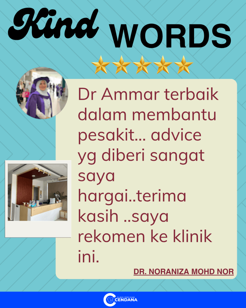 Dr Ammar Afifi Kamaruzaman komited untuk memberikan pengalaman rawatan pergigian yang selesa, berkualiti dan dapat dipercayai oleh setiap pesakit yang hadir ke kliniknya.