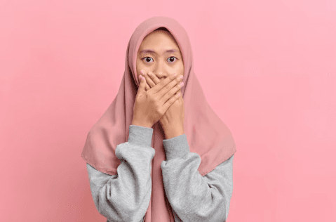 Terpaksa menggunakan tangan apabila senyum atau ketawa kerana kehilangan gigi.